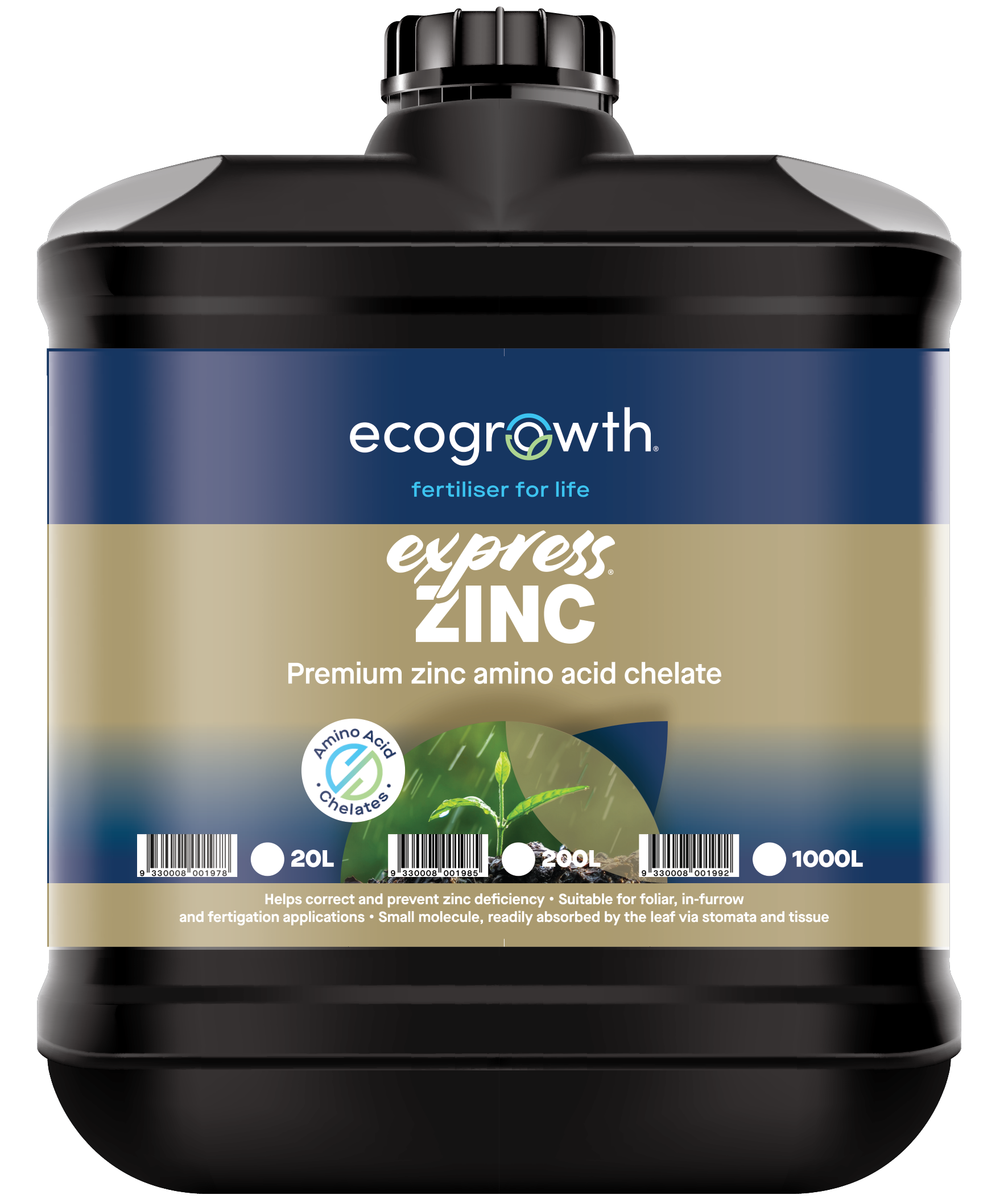 Express® ZINC is used in a wide range of crops to correct and prevent ZINC deficiency. For horticultural, broadacre and viticulture production where zinc deficiency may occur, Express® ZINC can be applied via foliar, in furrow or fertigated.