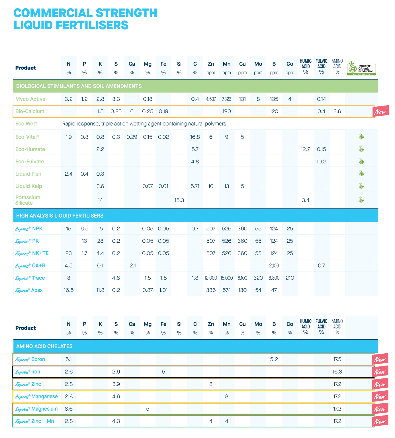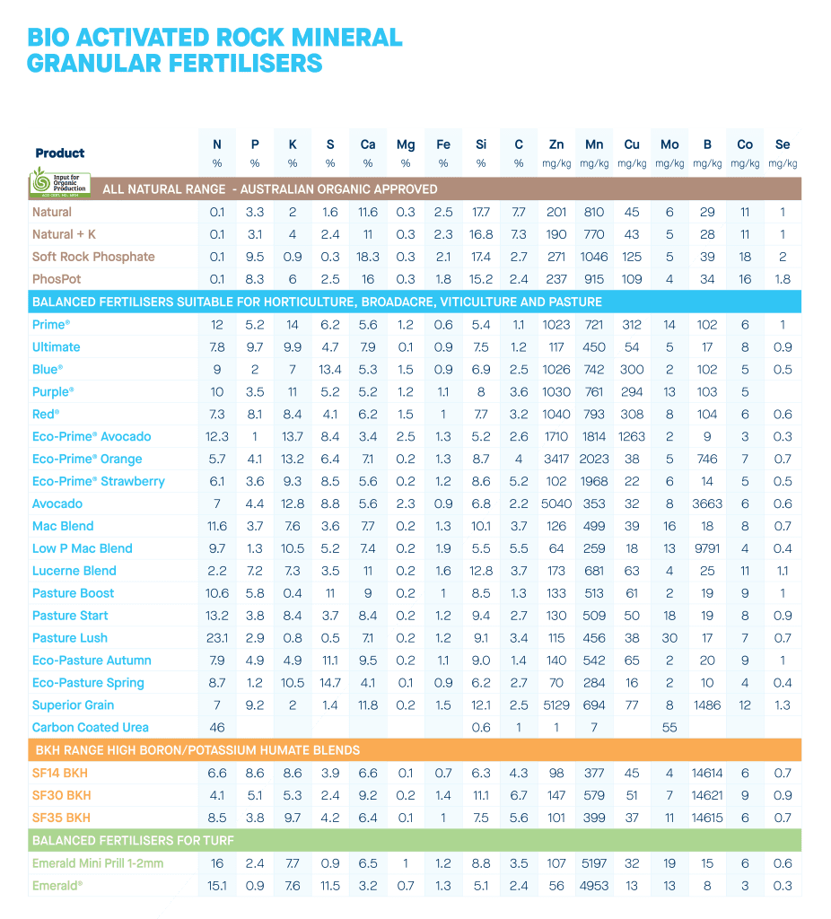 Contact us today to discuss your needs and analyse your soil/leaf test results.